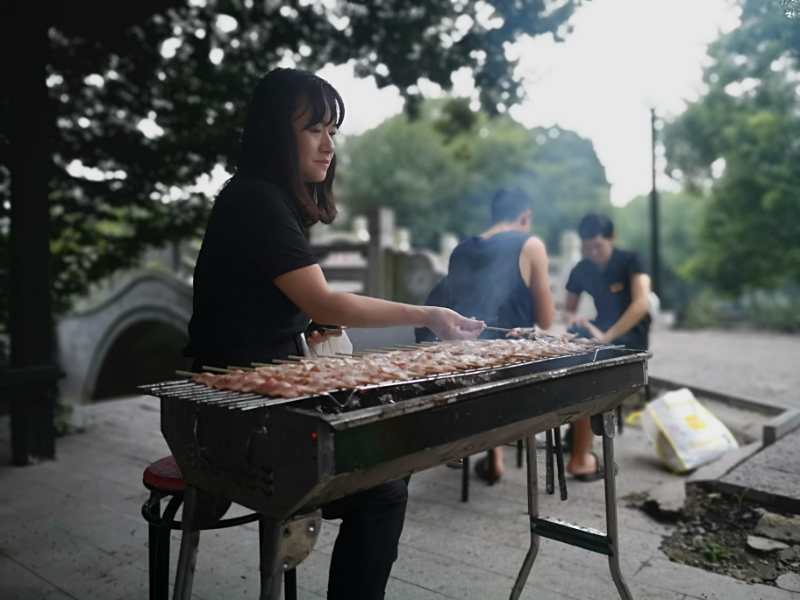 結(jié)束了白天的游戲活動,晚上是我們的休閑娛樂時(shí)刻,燒烤:串串的,打牌的,唱歌的;輕松又愉悅。
